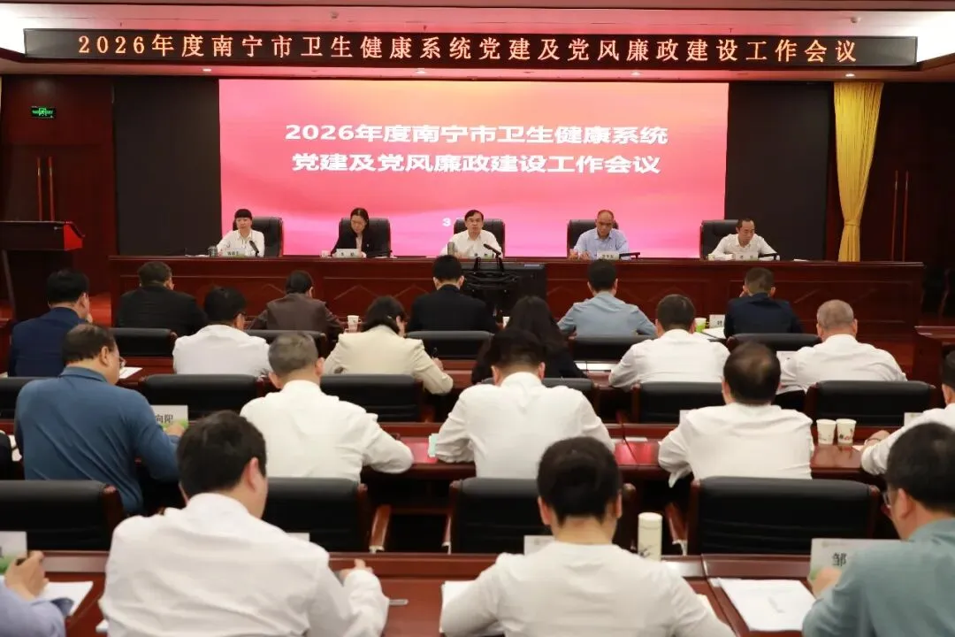 3月19日,南宁市卫生健康委员会党组在市卫健委八楼会议室召开2026年度南宁市卫生健康系统党建及党风廉政建设工作会议。会议在市卫健委八楼会议室设主会场,并以视频形式在委属单位同步设分会场。