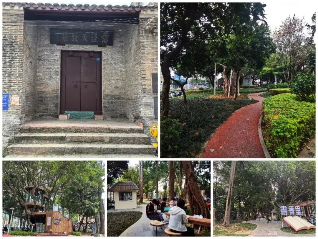 南宁市“小而美”公共空间建设改造项目实景。左上图为雷经天故居,右上图为南宁城文化街心公园(邓颖超同志出生地旧址),下图为自治区图书馆前-书香里口袋公园 (温燕聪 摄)