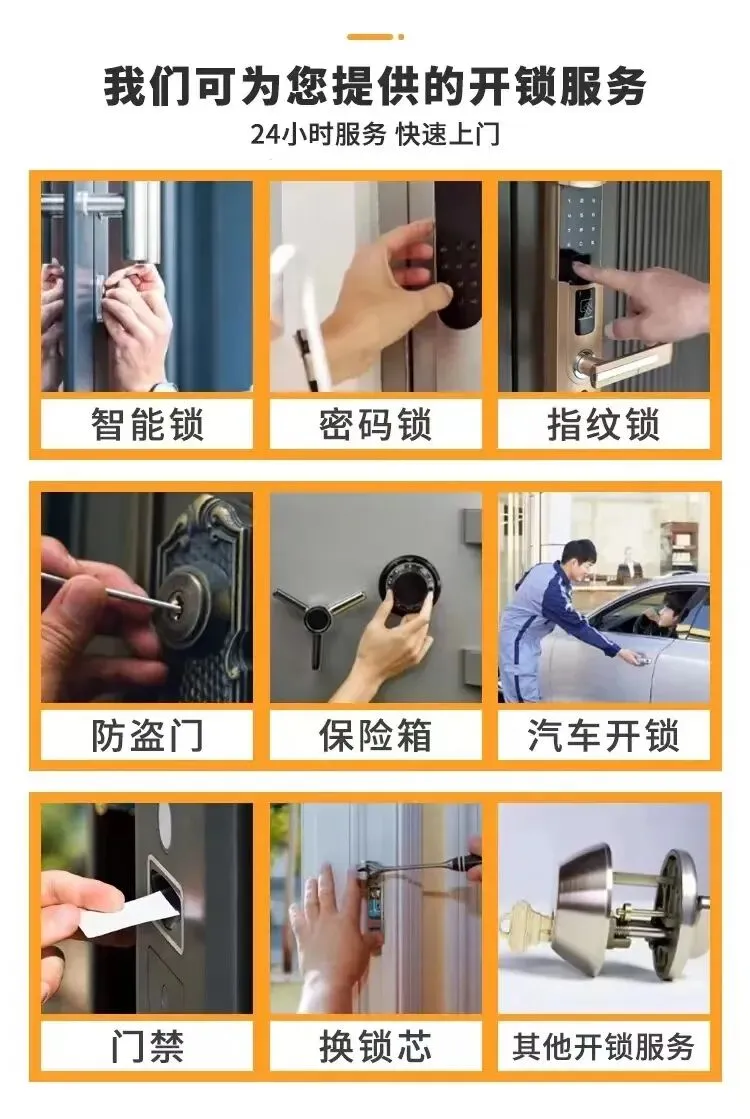 🛠️【服务内容】✔️ 防盗门开锁、室内门开锁🔑✔️ 更换锁芯(A级/B级/C级锁芯升级)✔️ 指纹锁安装与维修✔️ 汽车开锁、配汽车钥匙🚘✔️ 门锁维修、防盗升级✔️ 保险柜开锁服务✔️ 门禁系统安装与维护📞24小时服务热线:400-886-5352