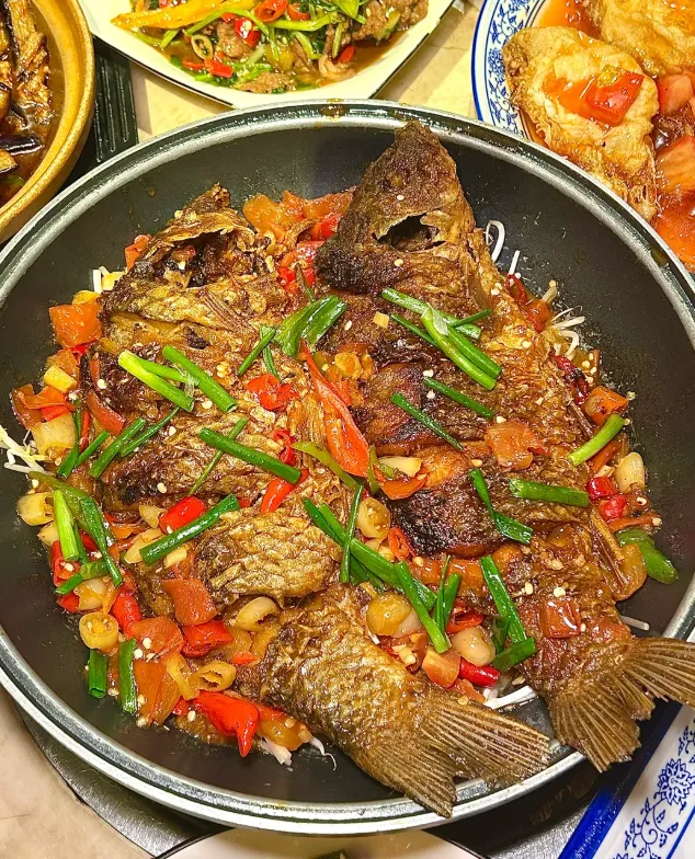 说一道家常些的做法吧。啤酒鱼通常是先把漓江一带常见的鲜鱼煎到两面微黄,再下番茄、辣椒、蒜瓣和啤酒同焖,最后收汁。重点不是猛辣,而是鱼皮有点焦香,肉还嫩,汤里带着发酵后的清苦尾韵。
