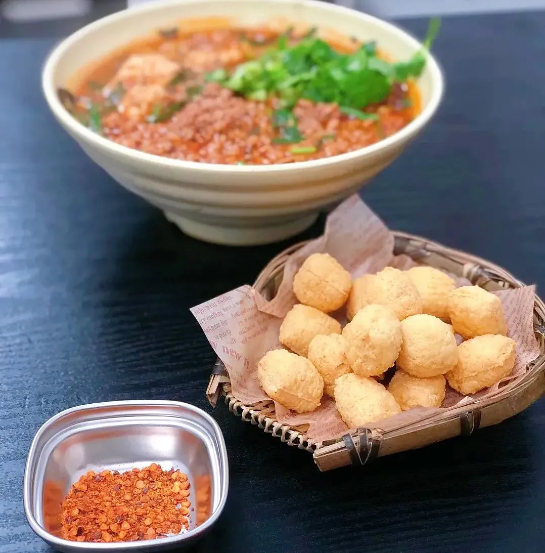 还有搭配的小食也很绝,那个炸得香呼呼的臭豆腐,外酥里嫩,蘸上干碟辣椒面,一口一个停不下来,解腻又解馋,每次去都得点上一份。