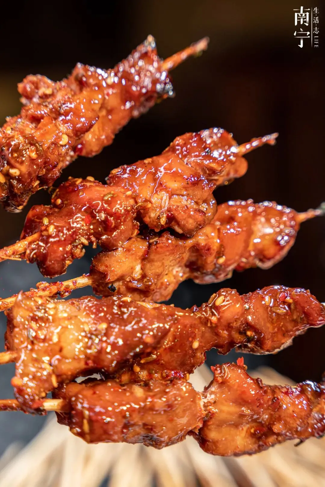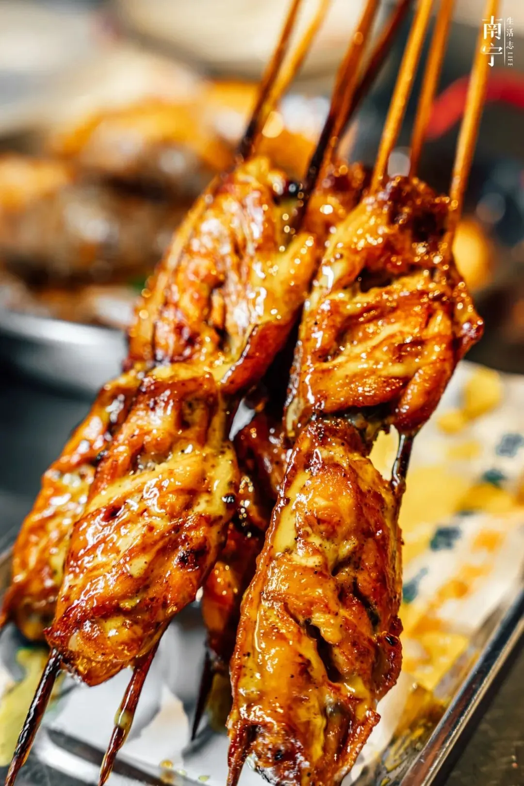 它不像南宁其他的烧烤摊每一次下单至少需要点半手,在这里每一样拿一串都可以,使用的依旧是烧烤必备的的孜然、蜂蜜、胡椒粉、辣椒面这些平平无奇的佐料。要说特别的,真的只能看火候和手艺!
