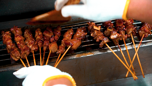 鲜嫩的肉串在红艳的碳火上翻滚,哪边火大哪边火小,阿英在23年的烤制中早就熟记于心。每一串都表皮焦脆,肉质很耐嚼,每一口都是浓郁的蜜糖味。
