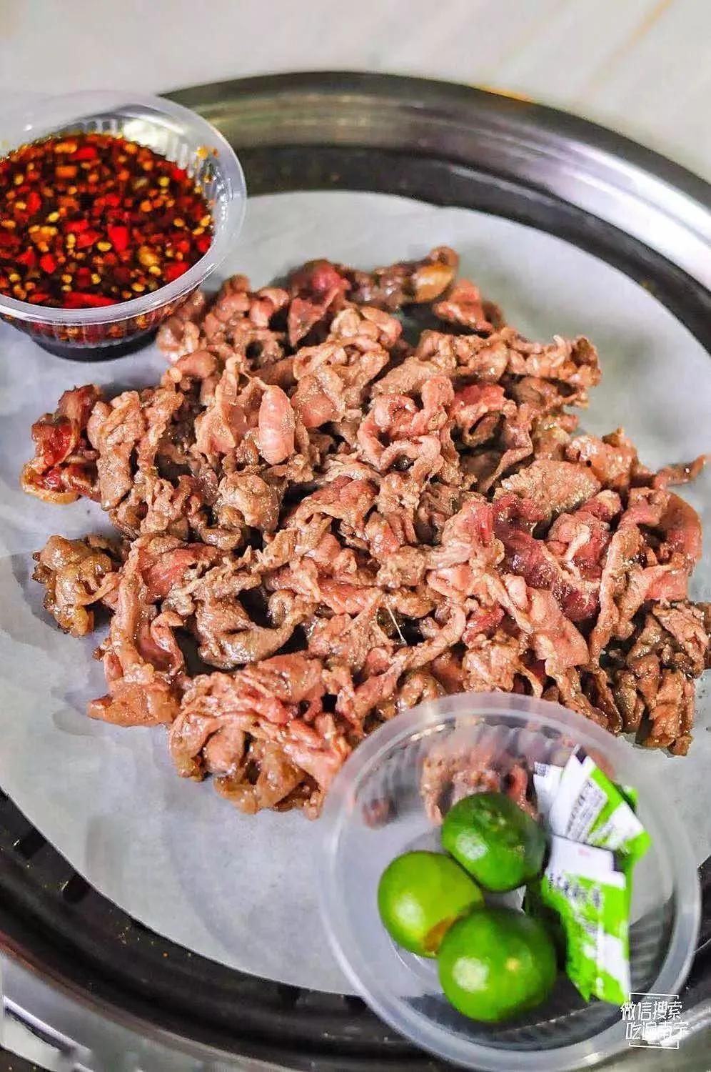 烤好后的大片生牛蘸上老板的秘制酱汁(青柠、芥末、特调酱汁等),再塞进嘴里,又嫩又香又滑。还可以选择用鲜嫩的生菜包住精华的牛肉,七分熟是牛肉最鲜嫩的状态!