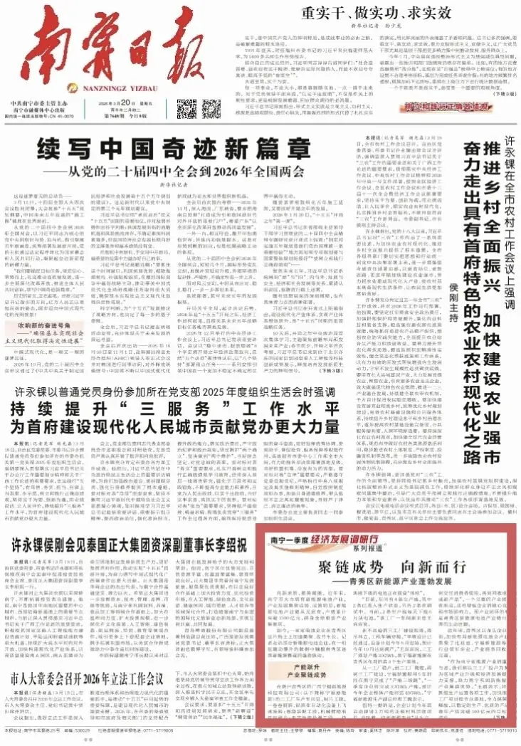 从项目建设现场的塔吊林立,到企业车间里的机器轰鸣;从产业链条的加速完善,到营商环境的持续优化,青秀区在向新求质中积蓄势能,在聚链成群中塑造优势,以更加昂扬的姿态为南宁一季度经济高质量发展注入澎湃动能。