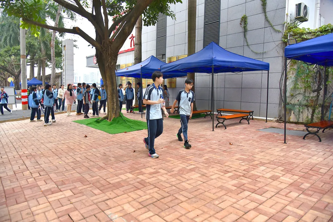 放学时分,记者来到南宁市第三十四中学。校门两侧,原先杂乱的绿化带已改造成了整洁宽敞的等候区。高大的木棉树下,遮阳棚、休闲椅一应俱全,宛如一处温馨的港湾,迎接着放学的学子与等候的家长。