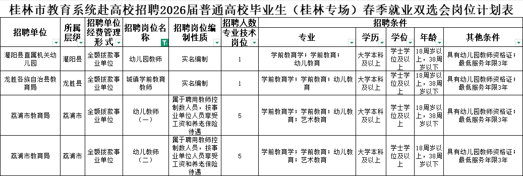 桂林市教育系统赴高校招聘2026届普通高校毕业生(桂林专场)春季就业双选会公告