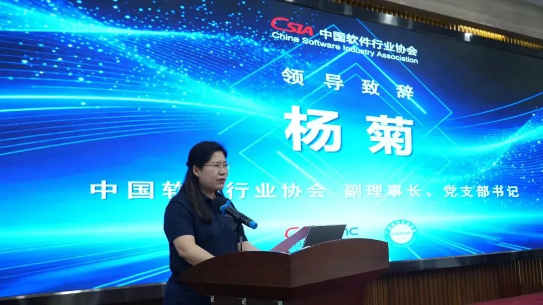 图2 中国软件行业协会副理事长、党支部书记杨菊为会议致辞