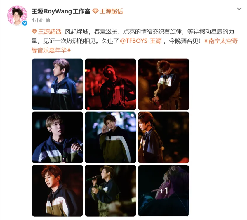 #💎王源#风起绿城,春意滋长。点亮的情绪交织着旋律,等待撼动星辰的力量,见证一次热烈的相见。久违了@TFBOYS-王源 ,今晚舞台见!#南宁太空奇缘音乐嘉年华#