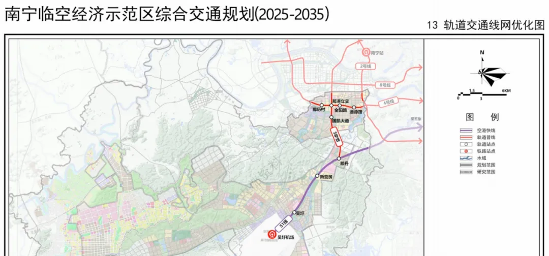 从吴圩机场一路往东,经吴圩、那丹直奔五象湖腹地,至于到底是大巴快线还是杭州那种快轨,官方还没拍板,但咱有备选方案啊 —— 地铁5号线要从国凯大道延到那丹站,还新规划了8号线主打江南区,以后坐地铁到那丹,换乘空港快线去机场,丝滑衔接。