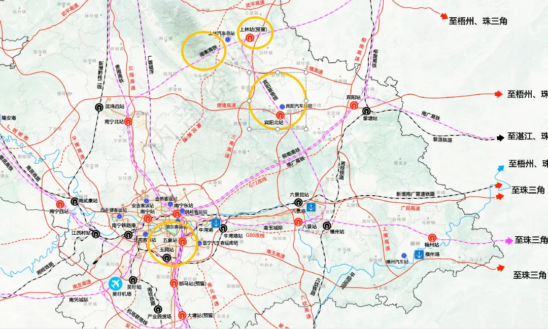 高铁和火车站这块,纠结了好久的南衡高铁,终于定了走上林,还设上林高铁站,350公里的时速,以后去衡阳、去湖南,那叫一个快。宾阳的朋友也别酸,规划了宾阳联络线,把上林站和宾阳北站串起来,照样能沾南衡高铁的光,一碗水端平,谁也不落下。