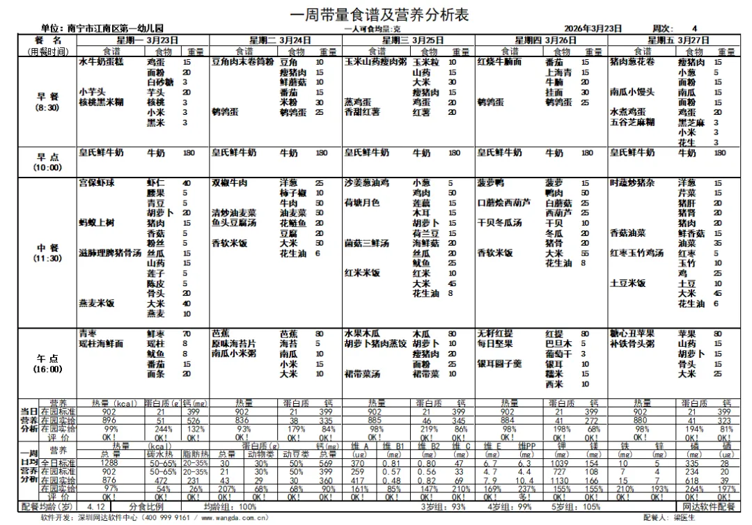 第四周营养食谱