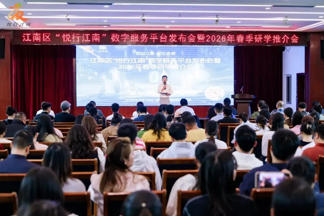 3月14日,江南区“悦行江南”数字服务平台发布暨 2026年春季研学推介会在良凤江国家森林公园圆满举行。本次活动汇聚辖区中小学校、家委会、研学基地及平台服务商等200余名代表,共同开启江南区研学旅行数字化、规范化、高品质发展的全新篇章。