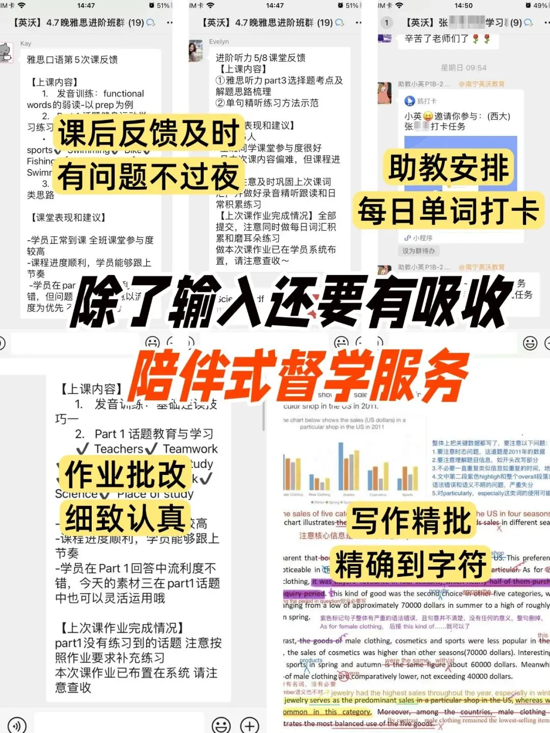 ✅ 全天候随时答疑|问题绝不过夜老师课后及时反馈学习情况,专属学习群坐班答疑,遇到不懂的长难句或错题,随时发问随时解决!