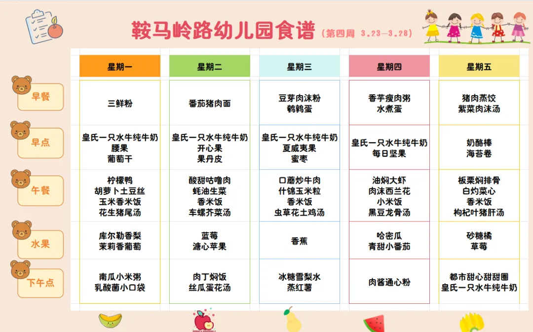 【“食”刻相伴】南宁市兴宁区鞍马岭路幼儿园第4周食谱(2026.3.23-3.28)