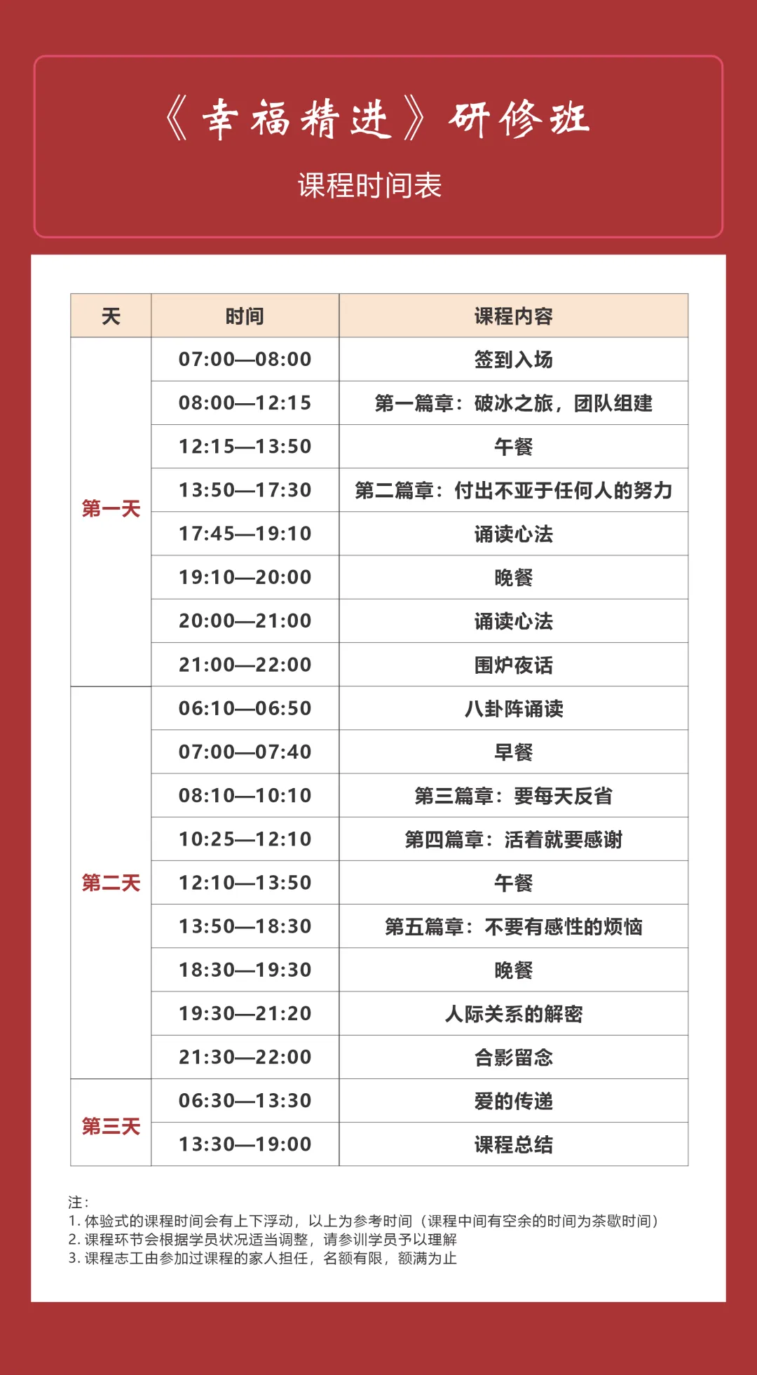 2. 企业家已经参加过课程方可派员工参课。3. 员工/孩子可以和企业家/家长同时参加本期课程。