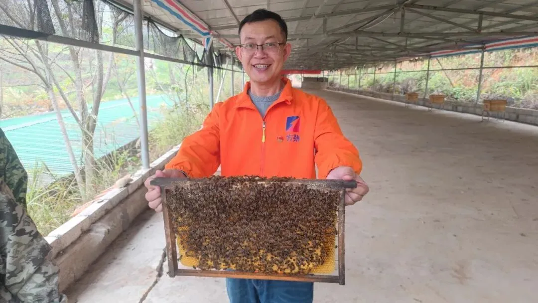 会后,第一书记们穿上专业防蜂服走进蜂场,近距离观察蜂群,亲手举起蜜脾拍照留念,并品鉴了方劲成熟封盖蜂蜜。大家纷纷表示,有商会的平台资源和企业的技术服务作保障,发展生态养蜂产业信心十足。