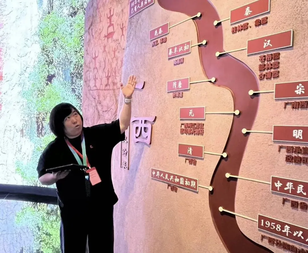 她的讲解不拘泥于刻板的介绍,而是将山水风光与人文故事深度融合,用生动的语言、真挚的情感,让静态的山水“活”起来,让厚重的文化“动”起来,带领游客读懂广西的山水之美、人文之韵。