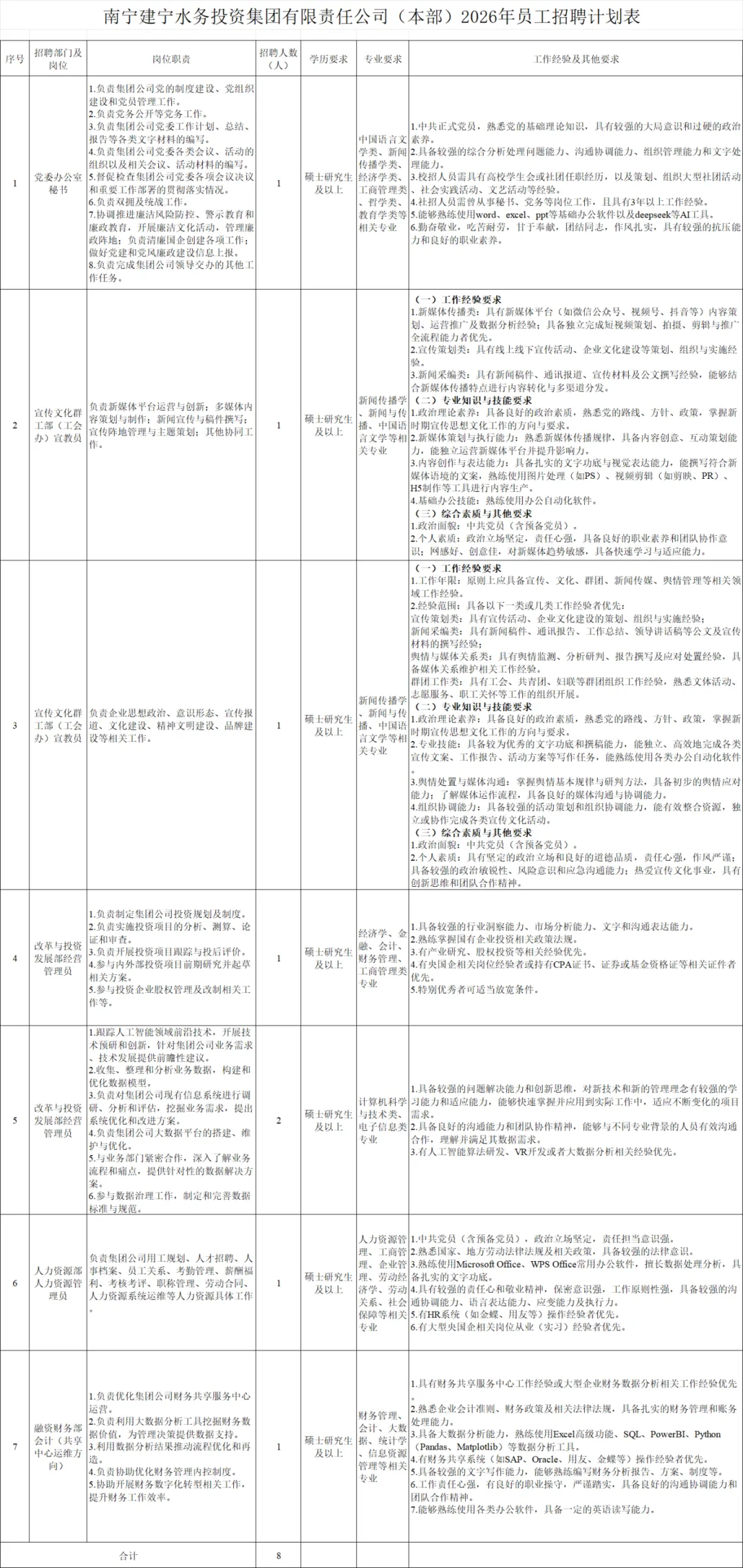 具体招聘岗位及要求详见《广西农垦永新畜牧集团有限公司2026年春季公开招聘岗位计划表》。