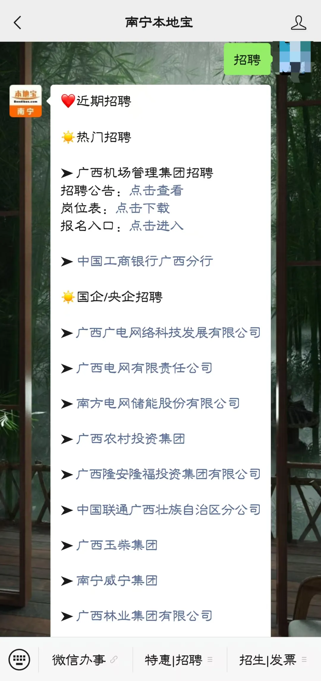 回复【招聘】获南宁国企/事业单位/学校/医院招聘