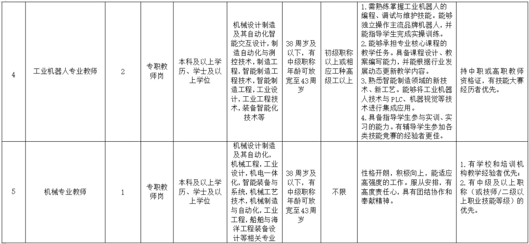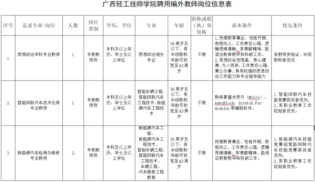 详见《广西轻工技师学院聘用教师岗位信息表》