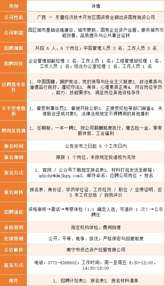 >南宁东盟经发区(国企),招6人!