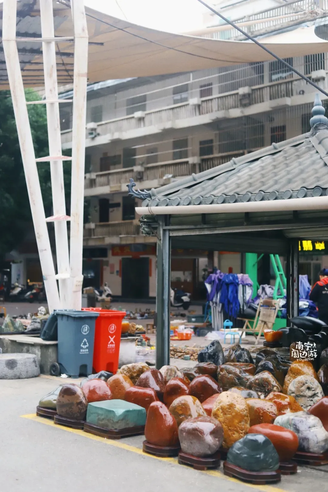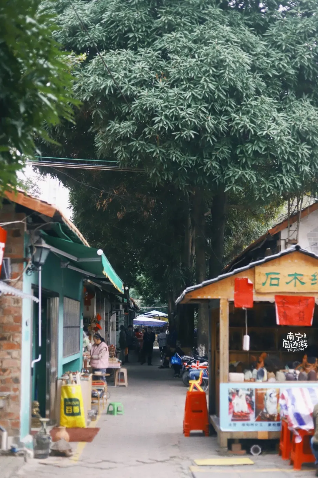 这就是【唐人文化园】,利用20世纪70年代修建的原南宁市手扶拖拉机配件厂、汽车配件三厂和柴油机配件厂的厂房和库区改造而成的文化艺术街区。古玩、字画、奇石、茶.....你能想到这些拖慢时光的老东西,这里都有。很多人喜欢拍照的鸳鸯楼也在旁边,可以一起去。