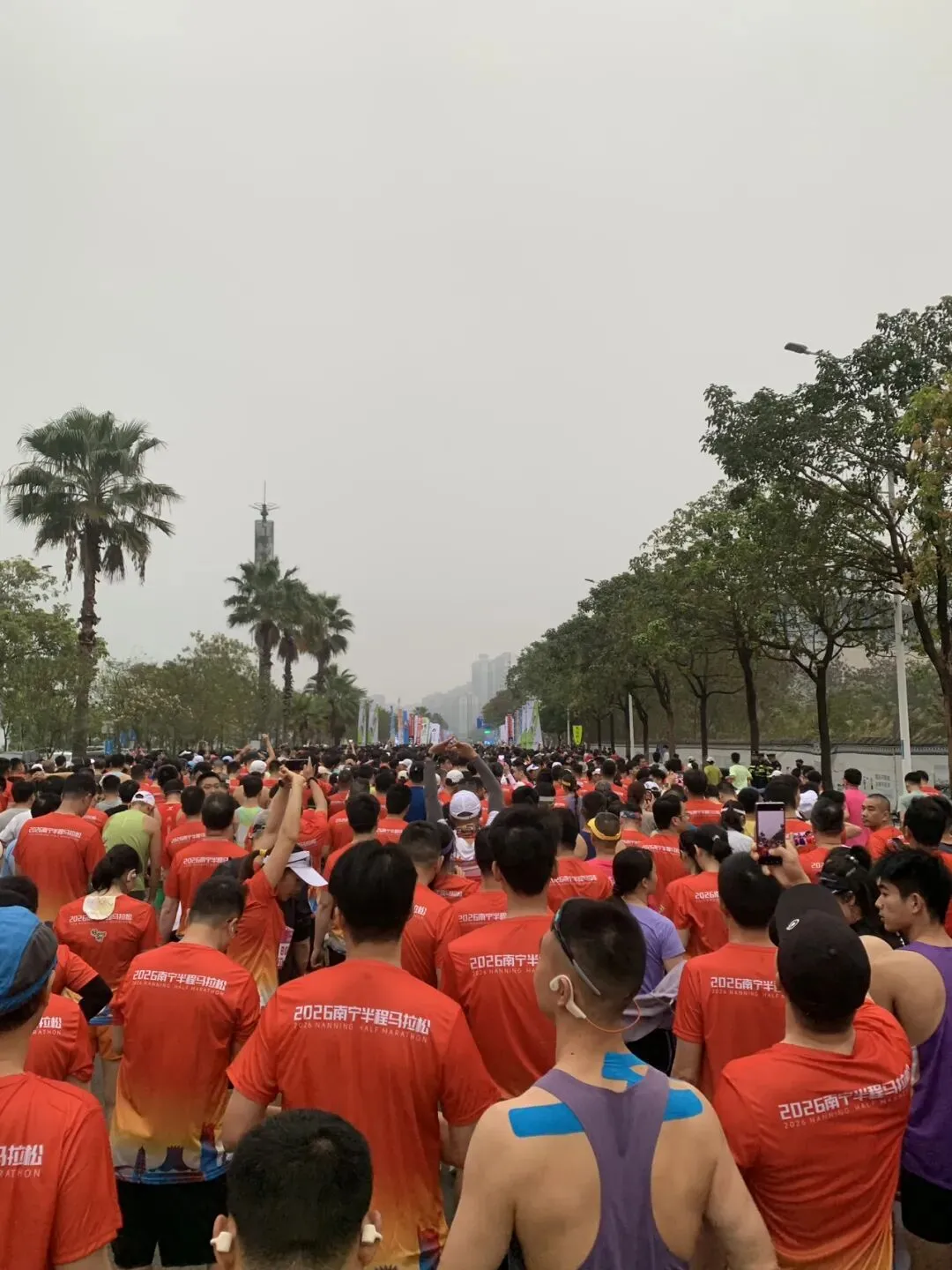 周日清晨的南宁街道,安静清冷,我和儿子陪合伙人去马拉松比赛集结起点,这次多了儿子这个啦啦队,合伙人笑的合不拢嘴,一路过去越来越多也是参加马拉松的运动员们,到集结点,非运动员不得进入内场,我和儿子挥手,看着合伙人汇入一片红色人潮。