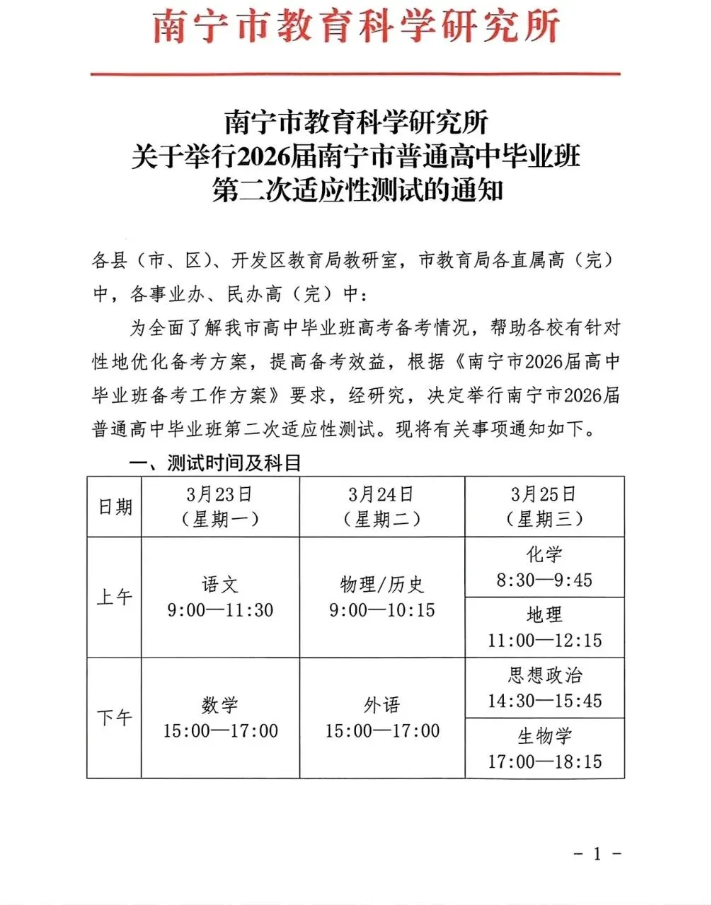 最新试卷+答案!3月23日南宁二模南宁市2026届普通高中毕业班第二次适应性测试