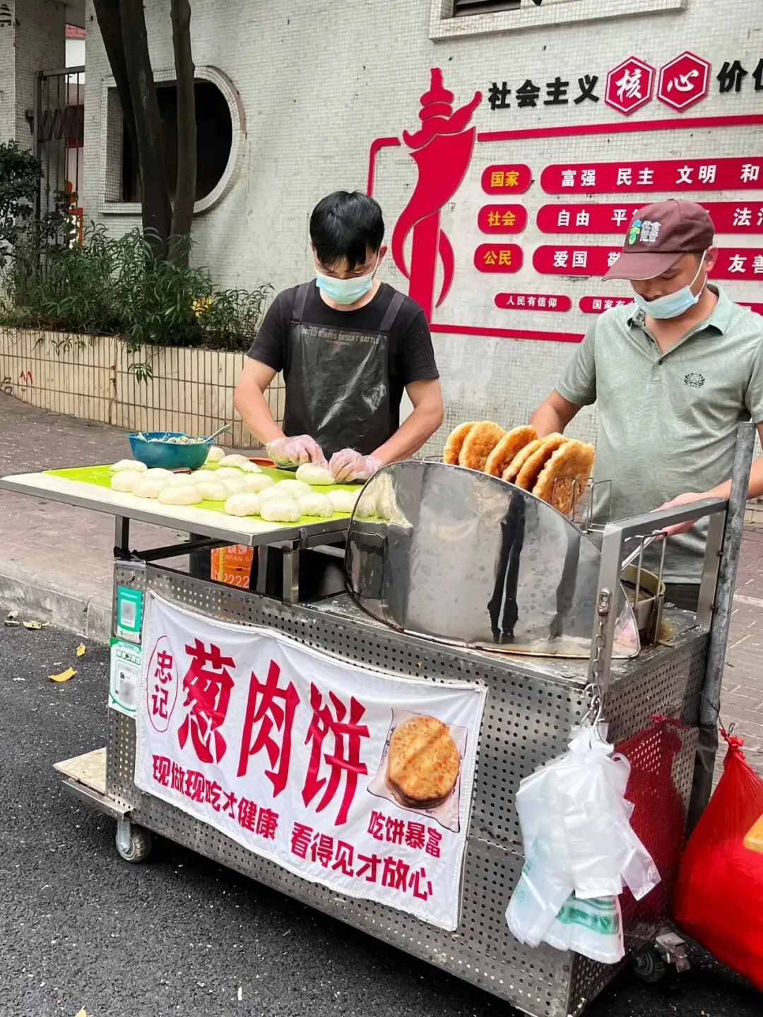 这个家葱肉饼是在新竹路靠近思贤路那一带,那里还有其他很多吃的,一路逛过去很容易就看到。