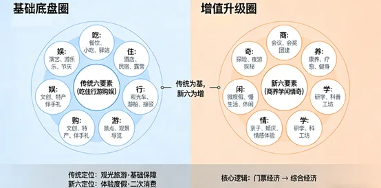 流量是这个时代的红利,但抓不住,就是竹篮打水一场空。根据青秀山管委会公布数据和相关新闻消息,2026年青秀山春节9天营收3475.63万元,二次消费占比约50%。初看看是不是挺亮眼?但你要知道,入园人数135.02万,人均消费算下来才25.7元,扣除门票经济后,景区实际二次消费获利人均不到13元。而根据文旅部相关数据显示,2025年国内5A景区门票收入占比已降至28%,而餐饮、住宿、文创等二次消费占比超60%。要知道人家的门票可比20元高很多。只能说青秀山这点数据还真可怜。根据笔者观察,目前青秀山的盈利手段非常有限,具体包括卖门票、车票、文创、餐饮(餐饮还非常简单,泡面、香肠为主,已被游客吐槽是“美食荒漠”)。从旅游老六式“吃、住、行、游、购、娱”来看,青秀山目前在“游”和“行”做的较好,但“吃、住、购、娱”方面则布局薄弱。如果从旅游新六样来看呢——“商、养、学、闲、情、奇”,青秀山似乎才触及边缘。文旅赚钱基本格局示意图(图片AI生成)
