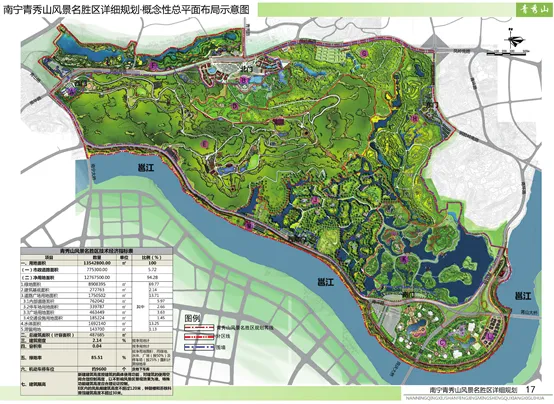 我们先看看一张2015年左右绘制完成的《南宁青秀山风景名胜区详细规划·概念性总平面布局示意图》。青秀山规划示意图(图片来自网络)