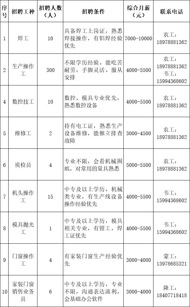 本公众号旨在转发分享工厂招聘信息,信息来源于工厂官方或各地人社部门,并非招聘中介,招聘具体详情请咨询招聘单位。