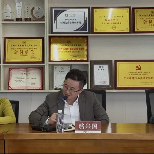 华商(南宁)律师事务所创始合伙人、副主任骆兴国作总结发言,他表示,本次讲座为在场律师提供了从法律合规向商业赋能转变的视野并勉励全所律师拓展认知,填补盲知,不断提升在复杂商事交易中的专业判断力,以更宏大的格局为客户提供增值服务。