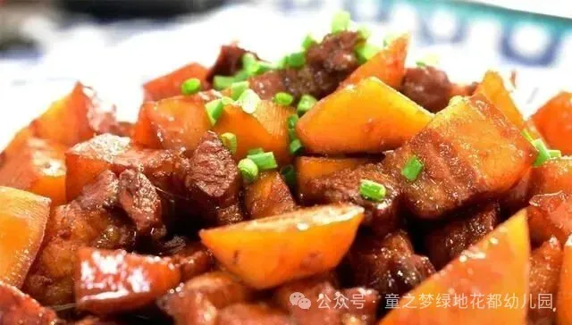 午餐:土豆红烧肉、番茄炒蛋、