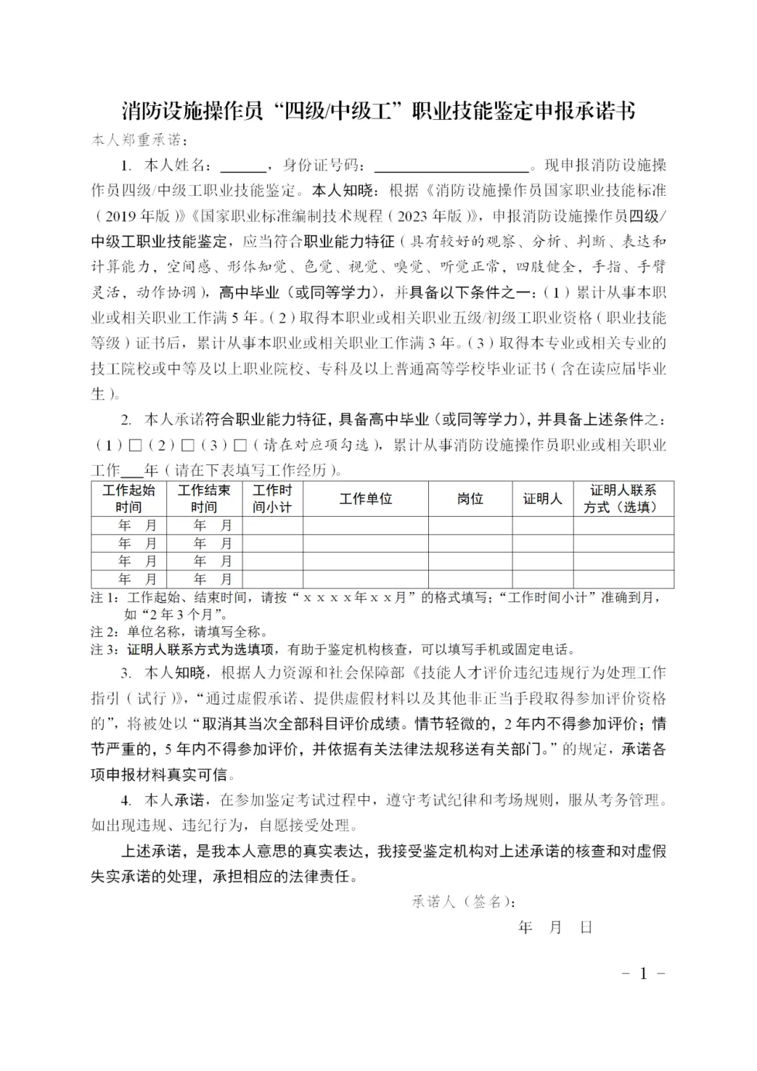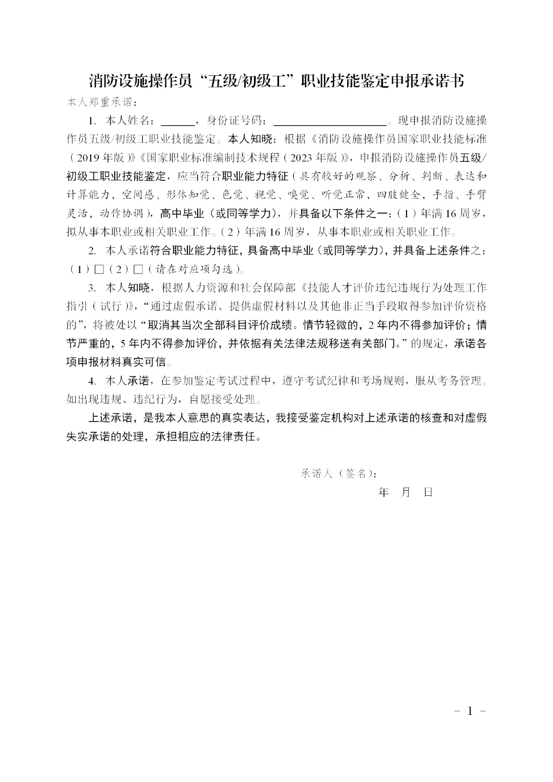 1、初级鉴定承诺书