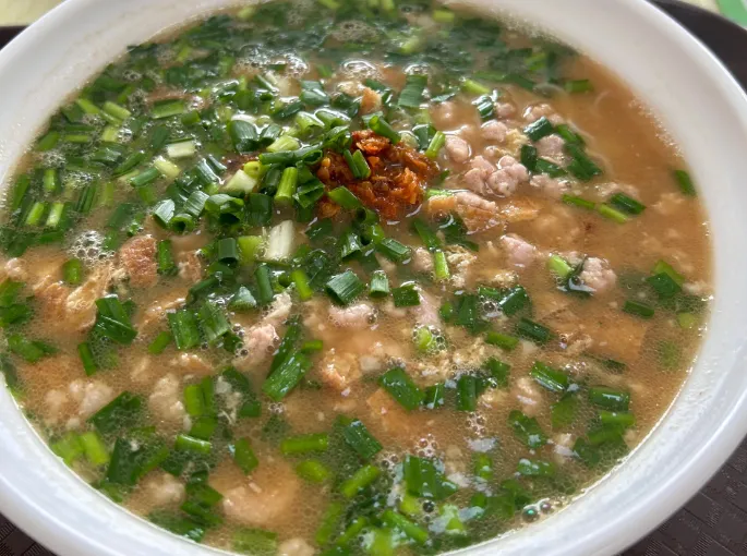 属于桂系风味,调味偏咸鲜,常用干葱、姜、胡椒粉、芹菜去腥增香,羊血赋予米饭独特的醇厚风味。