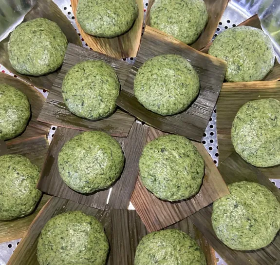 艾菜馍:也叫艾叶馍、艾草糍粑,是广西南宁马山县壮族的传统特色小吃,属于清明、农历二月初二(花朝节)的时令美食。口感Q弹软糯、不粘牙,清新艾草香,不苦不冲,清甜自然,凉感回甘;热吃软糯、凉吃筋道,油煎更香。