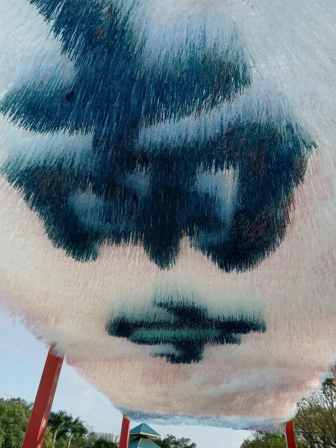 抬头一看,上面写着大大的“南宁”二字,当风拂过千万条丝带,随风摇曳,“南宁”两个字便在光影里缓缓浮现,非常有意境。