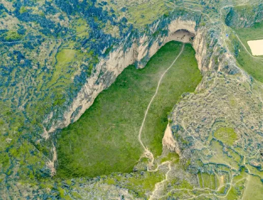 龙养天坑群属于典型的喀斯特“天坑集群”,其溶洞系统形成于二叠纪浅海环境,历经亿万年地质演变而成。