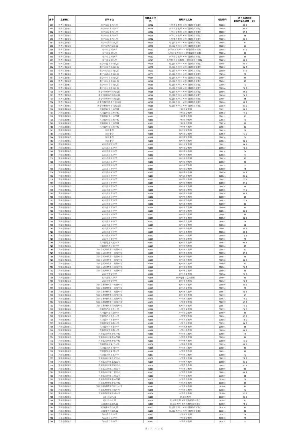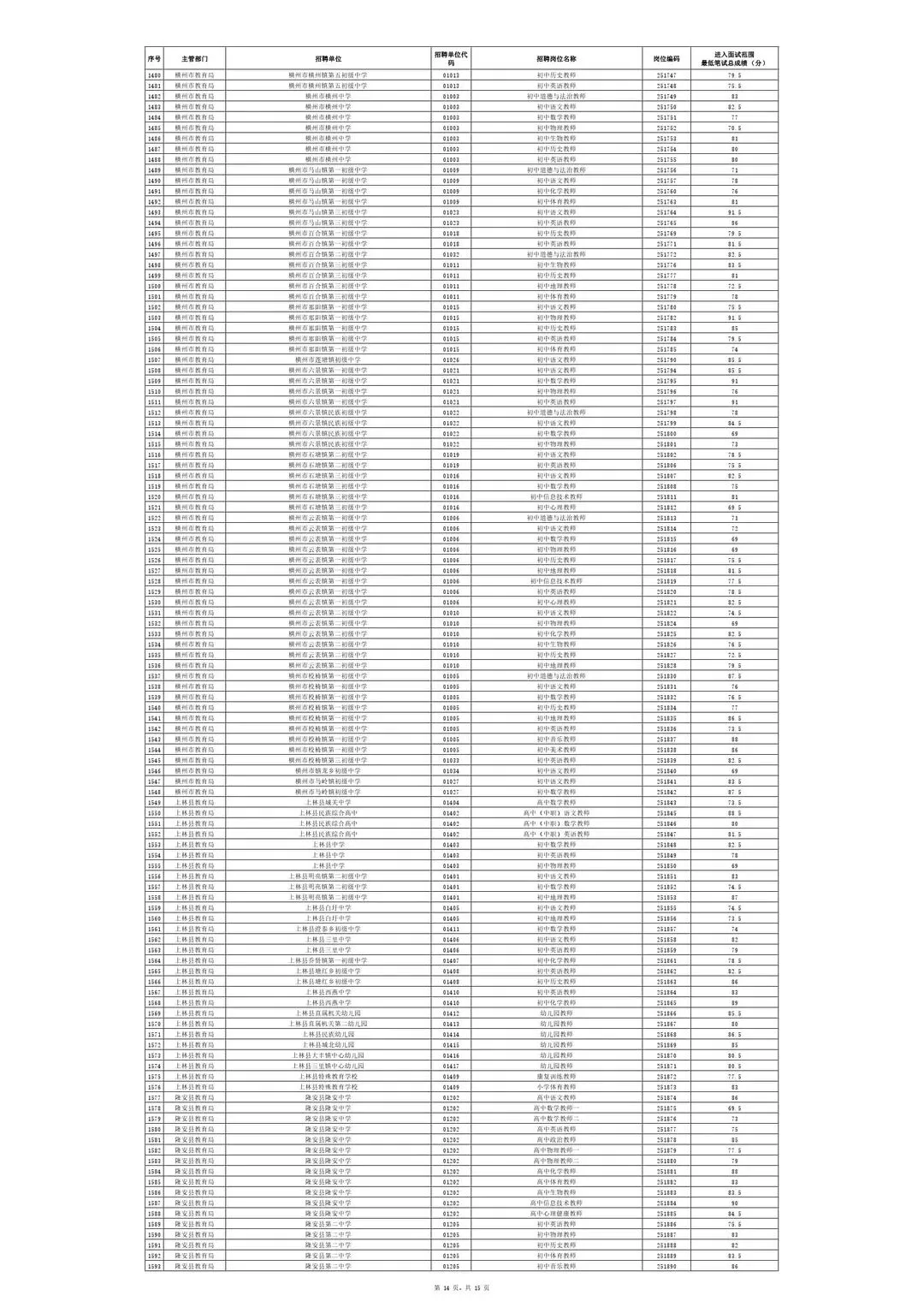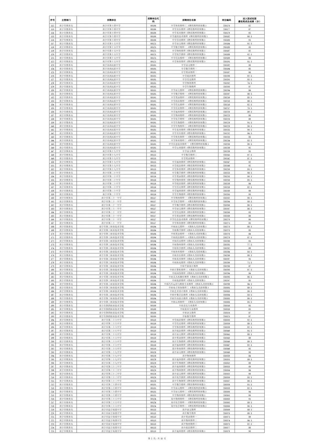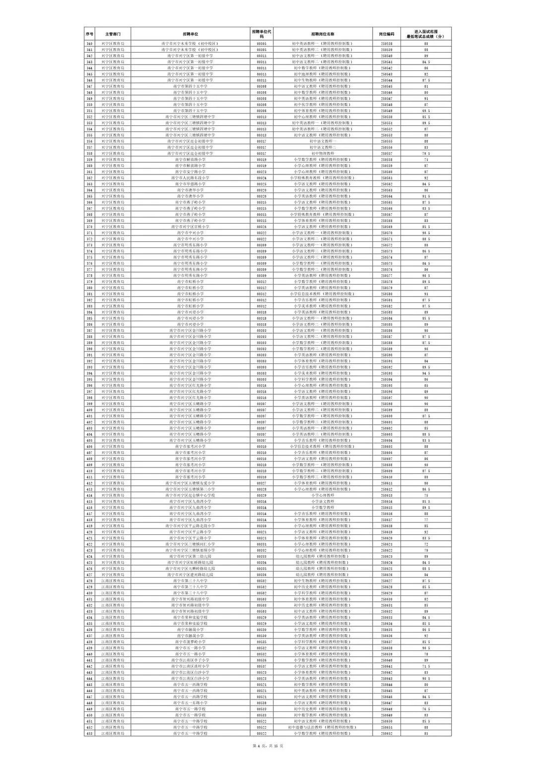 南宁市2025年教师招聘入面试笔试情况一览表