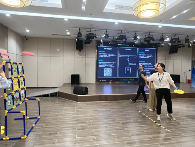 转运乒乓球突出互动与协作,10人用滑轨道具拼接运输乒乓球,运输过程跌宕起伏,员工们屏息凝神,当乒乓球顺利抵达终点时,全场爆发出胜利的欢呼。