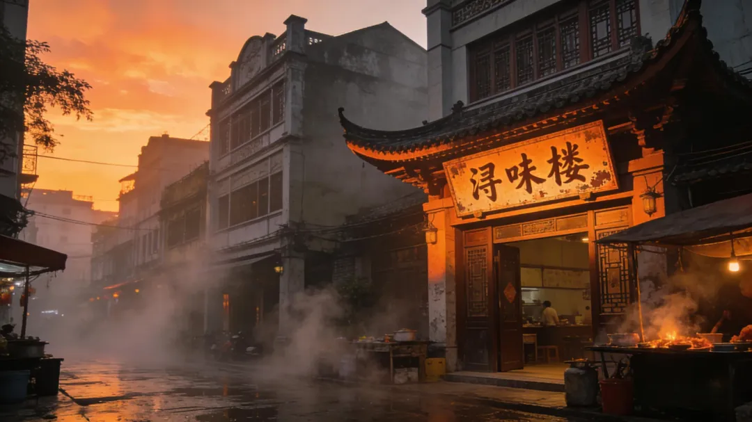 南宁的傍晚,空气里弥漫着一股独有的湿热,仿佛给整个城市罩上了一层黏糊糊的薄纱。浔味楼就坐落在这一片烟火气之中,骑楼的飞檐在夕阳余晖下泛着暖橙色的光,门口的招牌被岁月侵蚀得有些斑驳,但“浔味楼” 三个字依旧透着一股质朴的韵味。