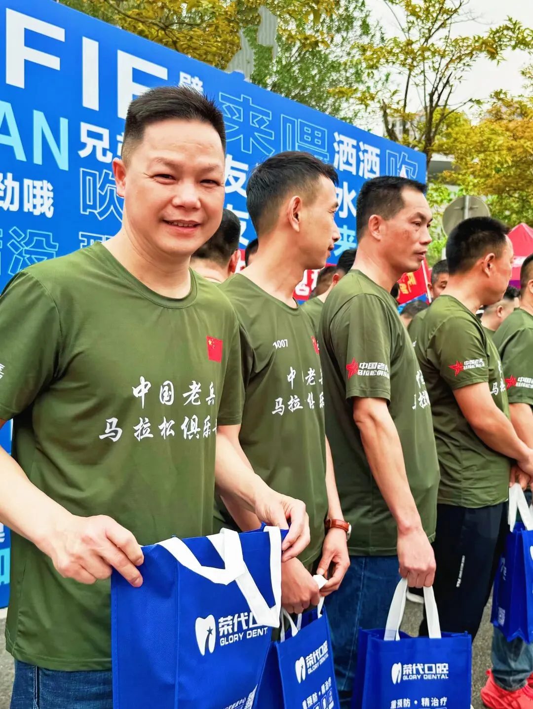 赛前老兵活动得到多位爱心人士鼎力支持:感谢韦沛机战友赞助蛋黄酥,感谢荣代口腔覃书记赞助帽子、腰包和毛巾,感谢柳螺香螺蛳粉郭总赞助螺蛳粉。
