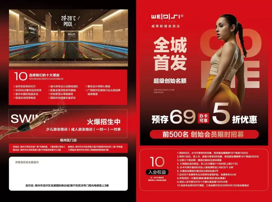 连锁品牌威蒂斯健身游泳中心入驻梧州龙圩南宁百货3楼,巨资打造玫瑰湖高端健身品牌!威蒂斯健身游泳中心会所3800平方米,带四季恒温泳池,