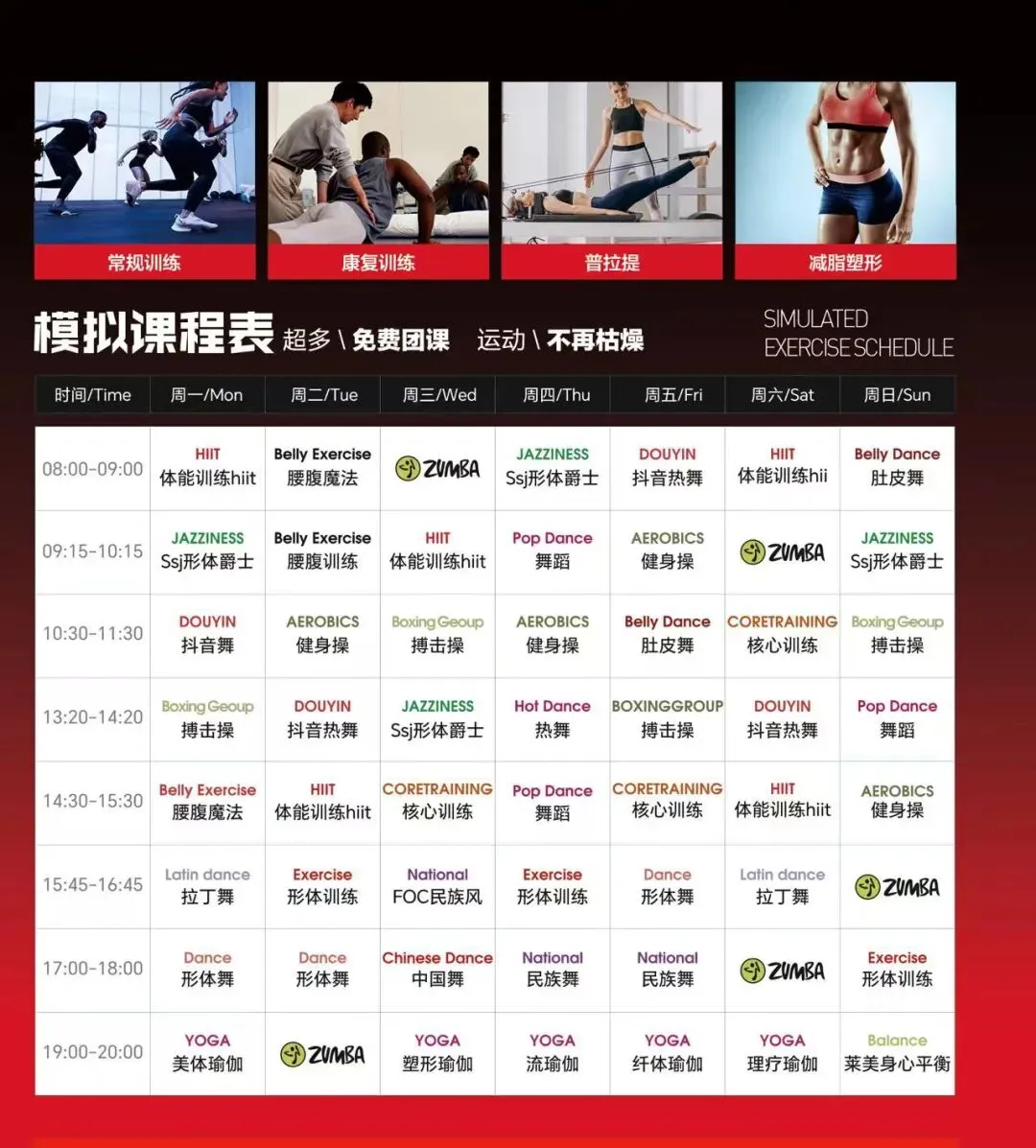 2.各种瑜伽课程,普拉提,踏板操,杠铃操,动感单车,等课程