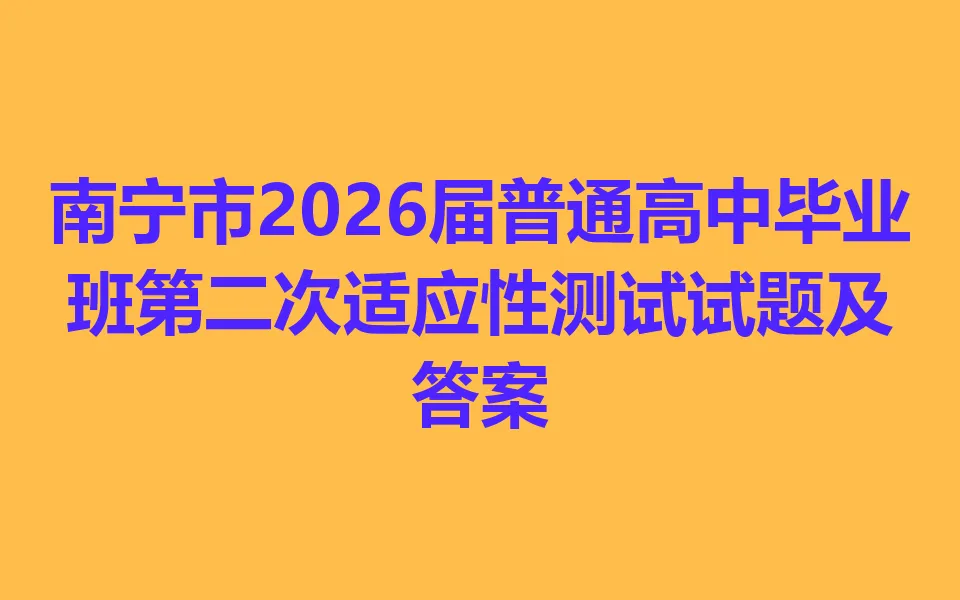 南宁市2026届普通高中毕业班第二次适应性测试各科试卷及答案,考不凡会将该资源的所有内容在考试结束后第一时间更新各科试题及答案。希望考生在2025年高考当中获得好成绩。该资源是关于新高考地区的语文,英语,数学,物理等其他科目
