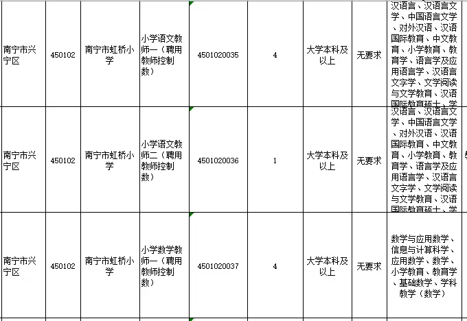 比如:2021年开始南宁市教师公招岗位学历要求,全部不要求全日制学历,那么函授等国家承认的学历均可报名,那应该读什么专业呢?具体可以查看岗位表对专业的要求。如下图