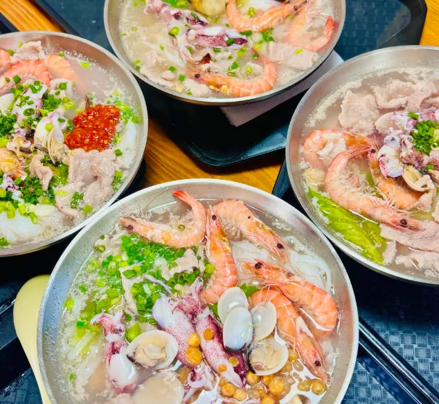 若只挑一道,我会写海鲜粉。骨汤先熬底,再把鲜虾、花甲、鱿鱼略焯,米粉烫软后入碗,最后浇汤,撒葱花和一点炸蒜。关键不是料多,而是汤要清亮,粉要滑,鲜味得收着,不抢口。