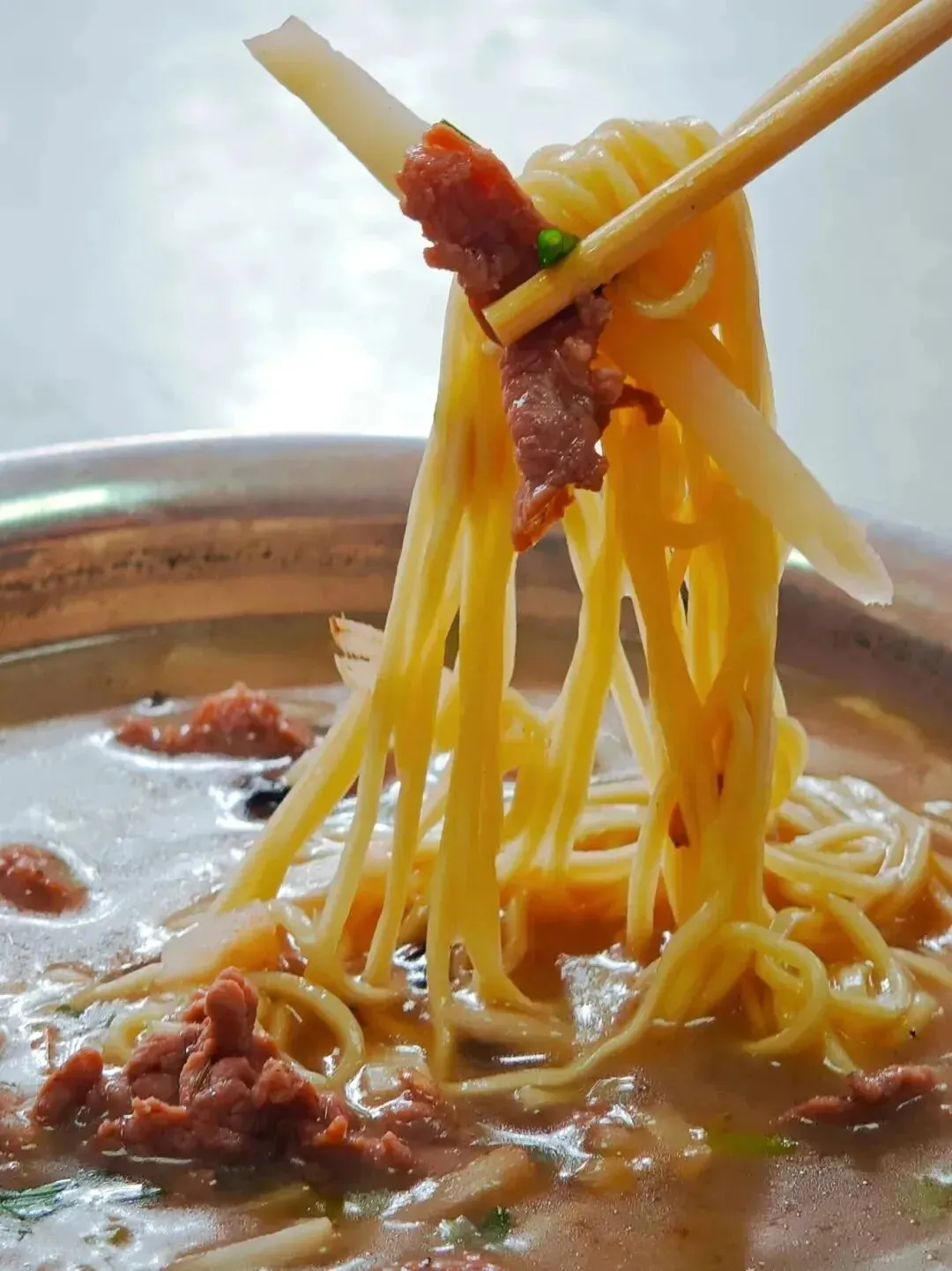 每次走进老友粉店,总能看见座无虚席,食客们吃得酣畅淋漓、满头大汗,沉浸在这口地道风味里。我却总被辣得眼泪鼻涕齐流,大概是实在不太能吃辣。可即便如此,也挡不住它的诱惑—— 浓郁的酸笋搭配足量辣椒,初尝觉得味道独特,越吃越上头,越吃越上瘾。